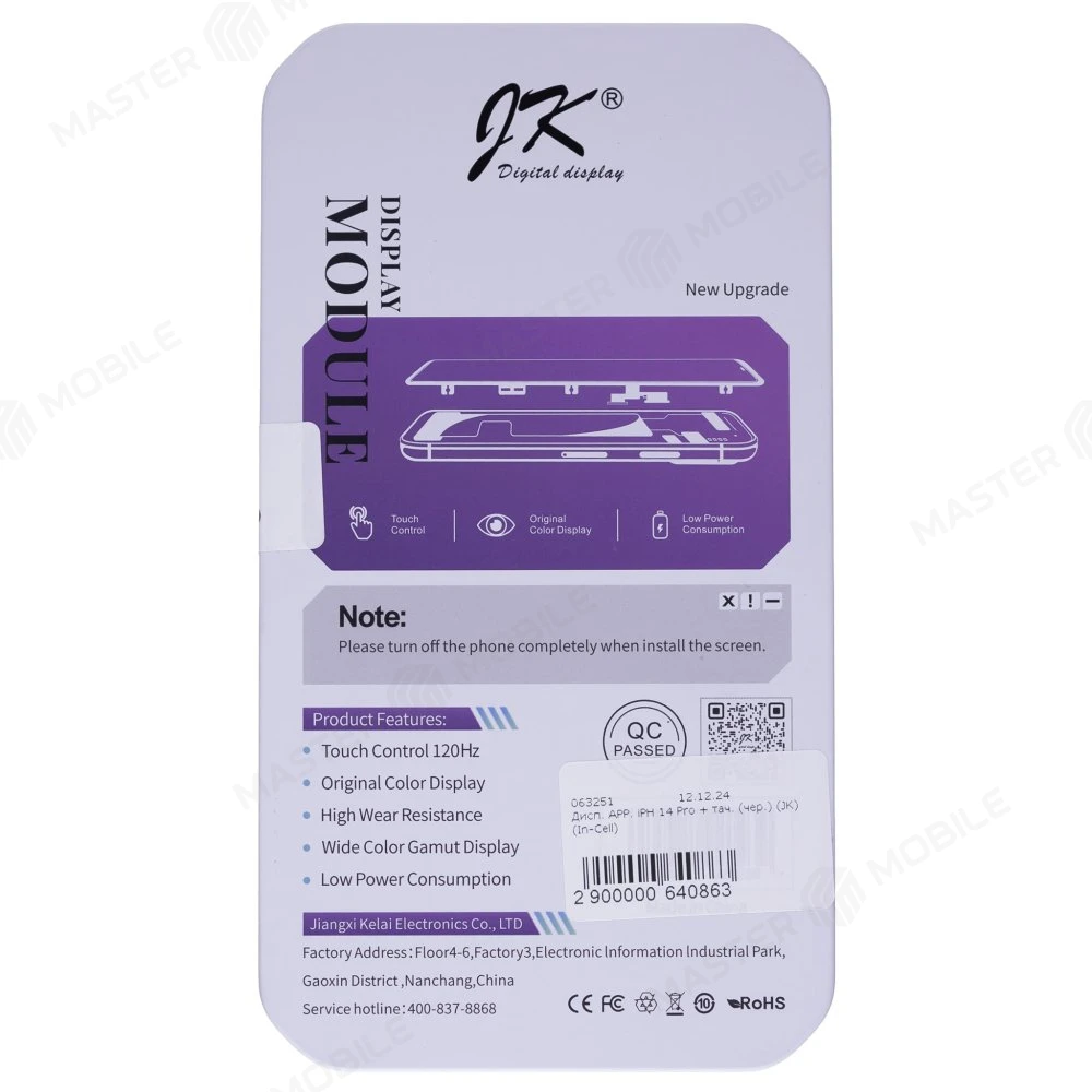 Характеристики Дисплей для Apple iPhone 14 Pro + тачскрин (черный) (JK) (In-Cell) (площадка под IC)