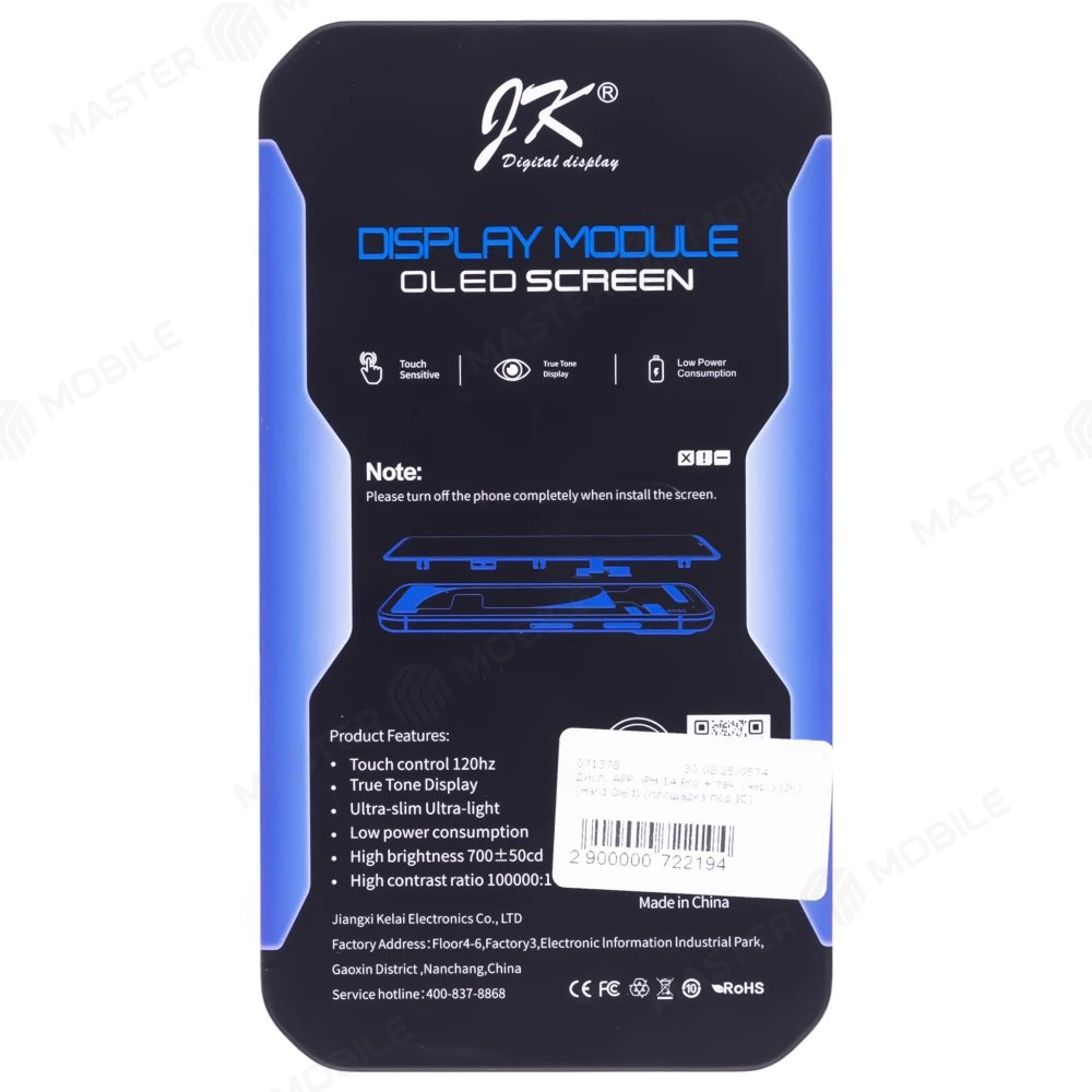 Описание Дисплей для Apple iPhone 14 Pro + тачскрин (черный) (JK) (Hard Oled) (площадка под IC)